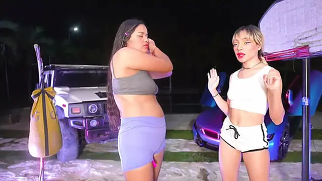 2 brunettes are servants of the most pretty blonde
