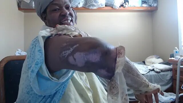 A curvy black woman dominates her submissive, squeezing her big boobs in his face while she shows off her chubby cheeks. She rides him hard, controlling every move as he desperately tries to keep up. She ends with a powerful creampie, claiming him as hers.