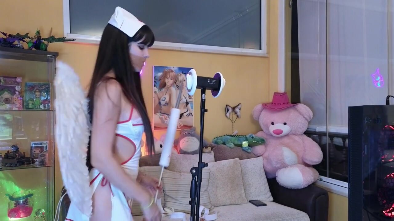 Black-haired beauty dons a sultry nurse outfit and plays Mobile Legends. She gagged, gives hot head while licking ears in gothic cosplay. Japan's hentai style. She loves huge fake boobs!