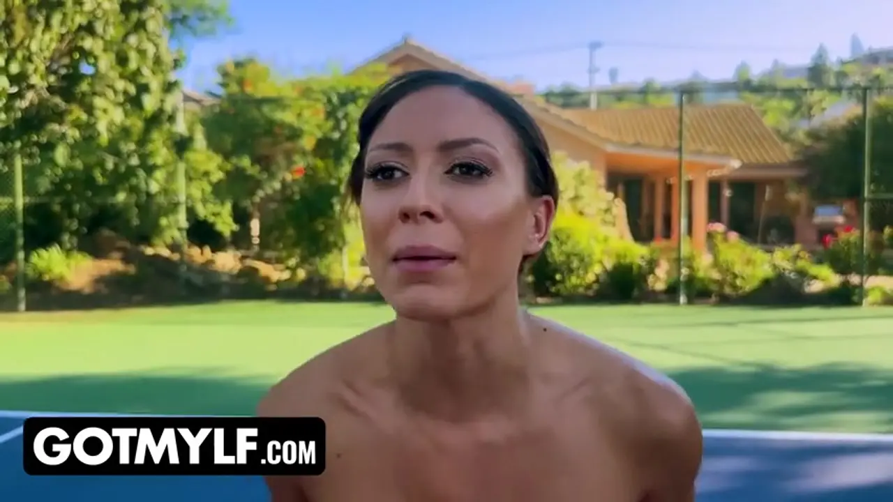 Tattooed European stepmother, Cassie Del Isla, teaches her stepson a lesson in more than just tennis. They play a steamy game of tennis in the backyard, but it turns into a workout of a different kind when she takes him in missionary and doggystyle positions. She's fit and toned with a shaved pussy and nipple piercings. He cums on her tits at the end.